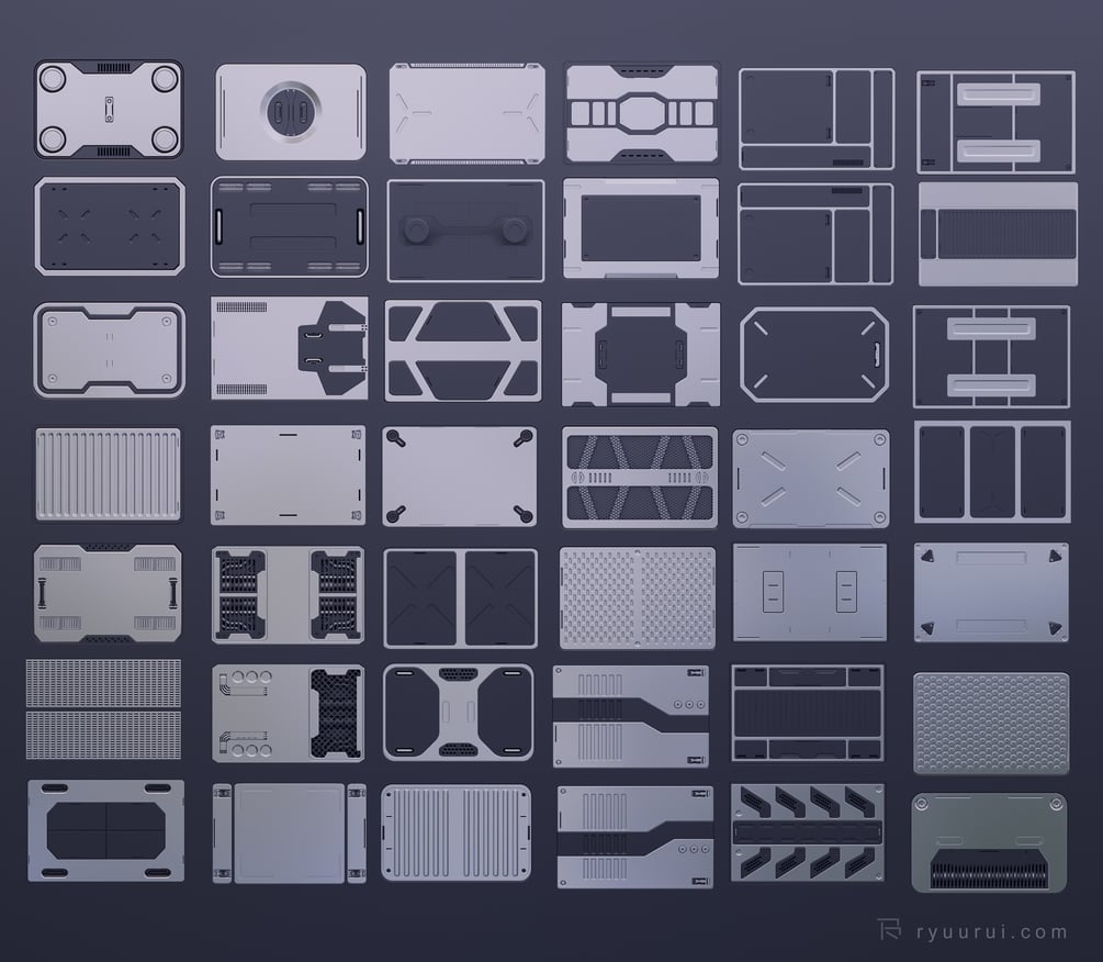 - 80+ sci fi decal panels, split into 3 folders, rectangular, square and narrow panels
